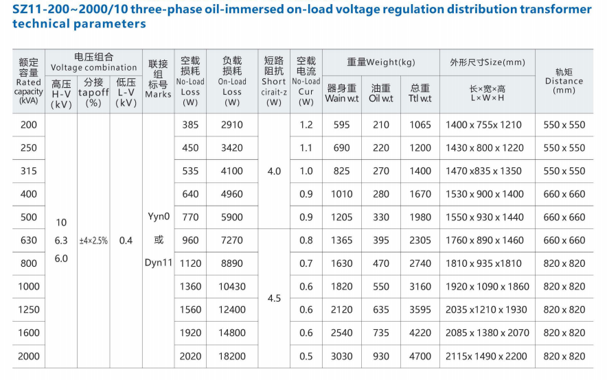 SZ11-200~2000/10 तीन-चरण तेल-डूबे हुए ऑन-लोड वोल्टेज विनियमन और वितरण ट्रांसफार्मर