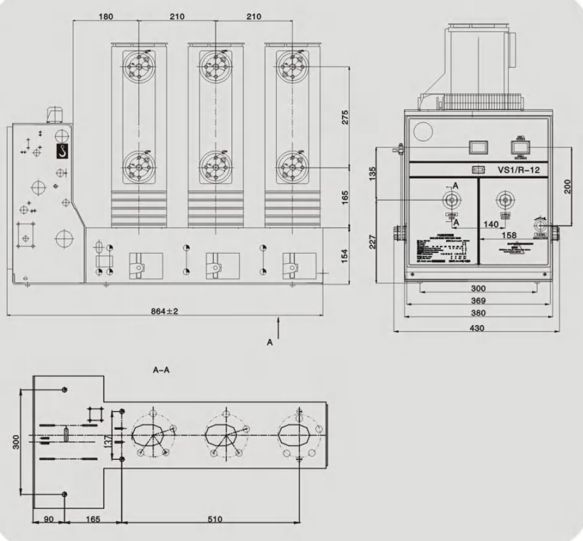 वीएस1/आर-12 इंडोर वैक्यूम सर्किट ब्रेकर लेटरल ऑपरेटिंग मैकेनिज्म के साथ